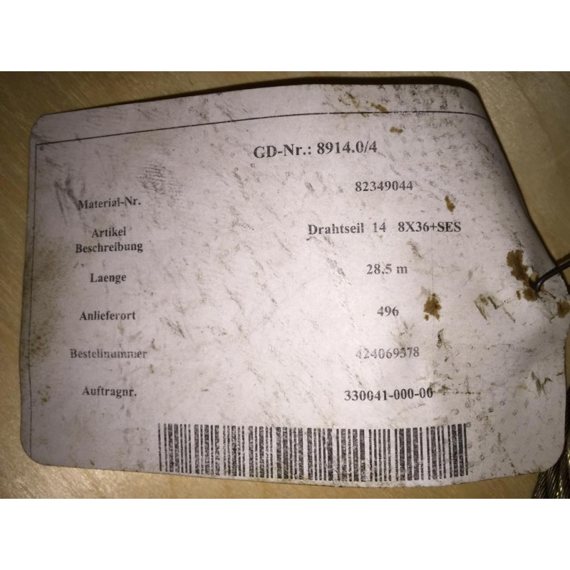 Drahtseil DH500 14 H12 2/1 - 28,5m - 8X36+SES ZS